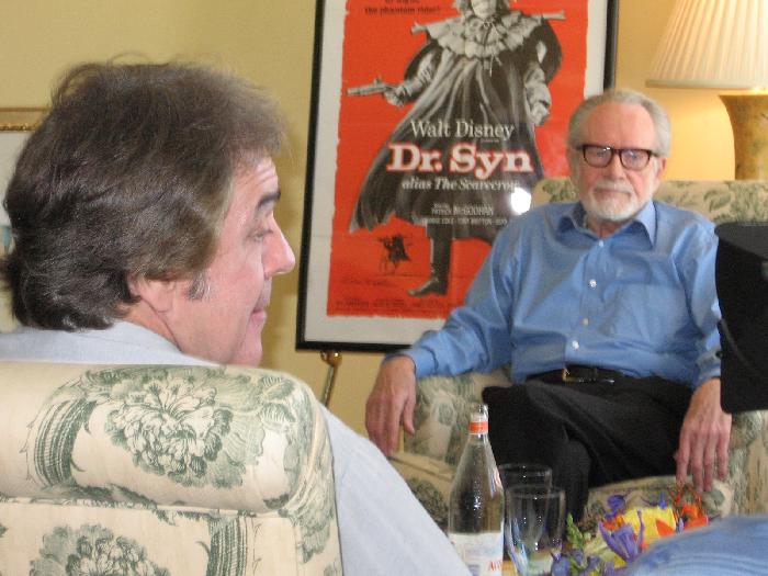 Larry Green interviewing Patrick McGoohan for the Walt Disney "Dr. Syn Alias The Scarecrow" special DVD release of 2009. |